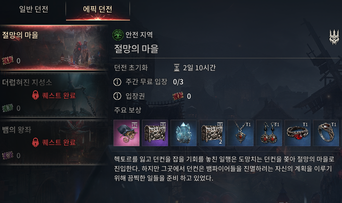 - 에픽 던전 3회 클리어 → 희귀 악세서리를 확정으로 얻을 수 있음.