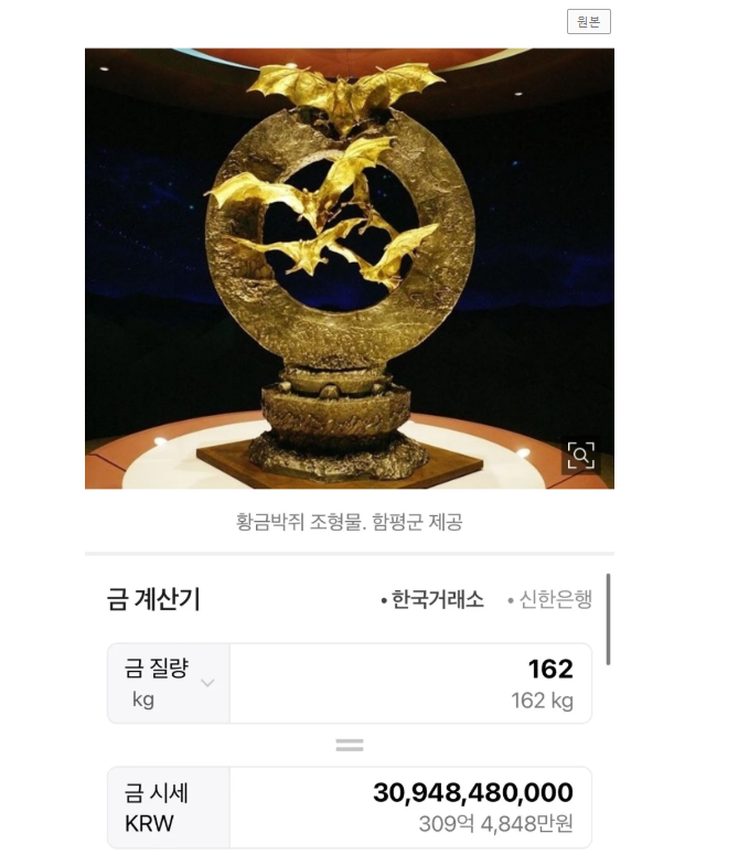 함평 황금박쥐상 가격 시세·구매 2025
